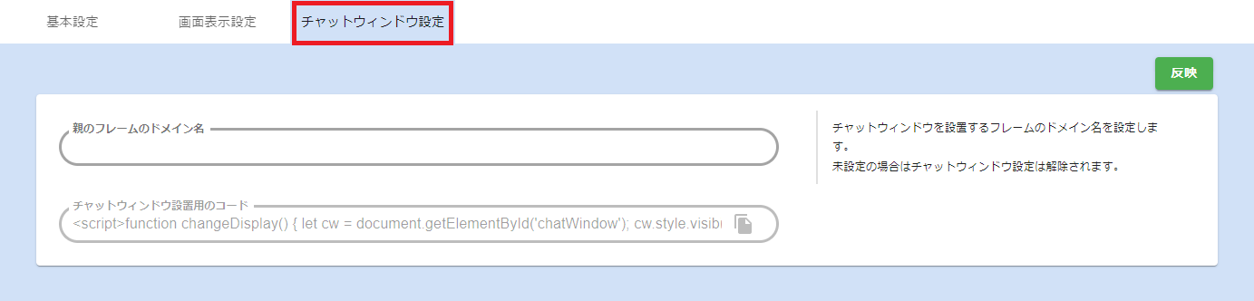 「チャットウィンドウ設定」タブをクリックします。