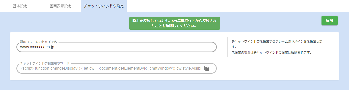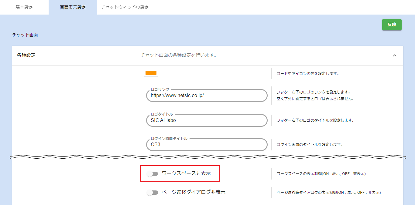 反映ボタンをクリックして設定を反映します。