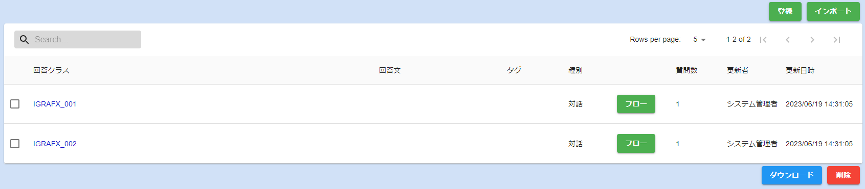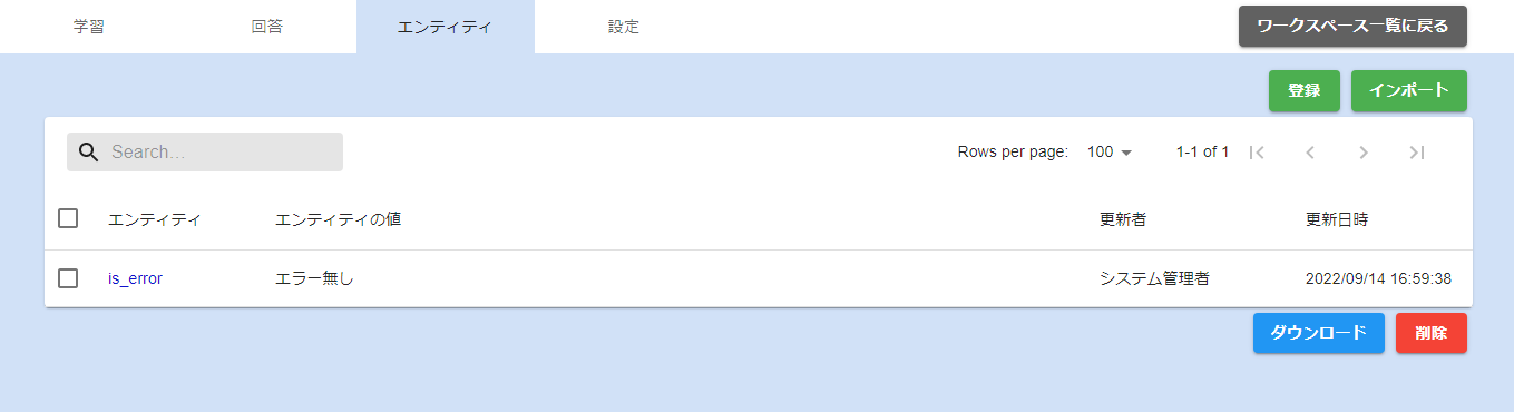 ワークスペースの状態が「学習済」「使用中」になりますと、業務フローの検索が行えるようになります。
