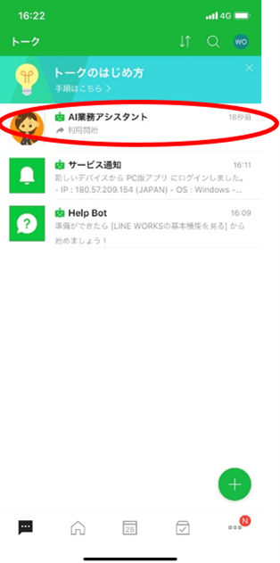 以下の手順を順に実施することでチャットボットをLINE WORKSから利用できます。