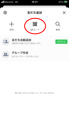 - [QRコードリーダー]を開き、BotのQRコードを読み込みます。