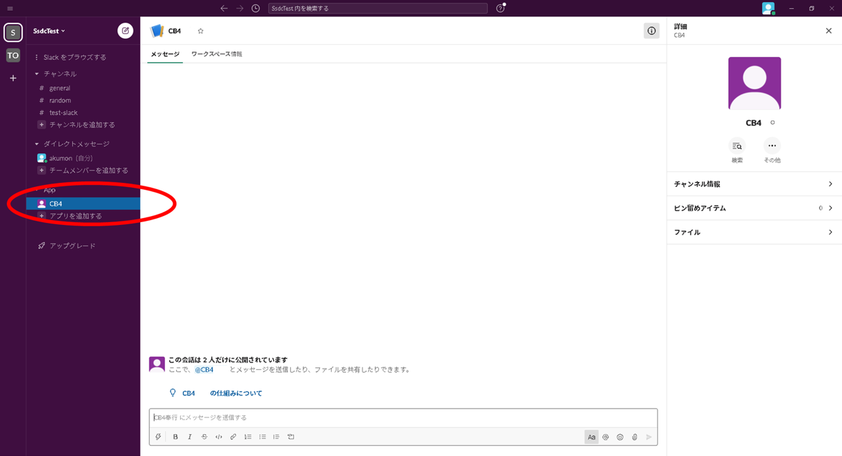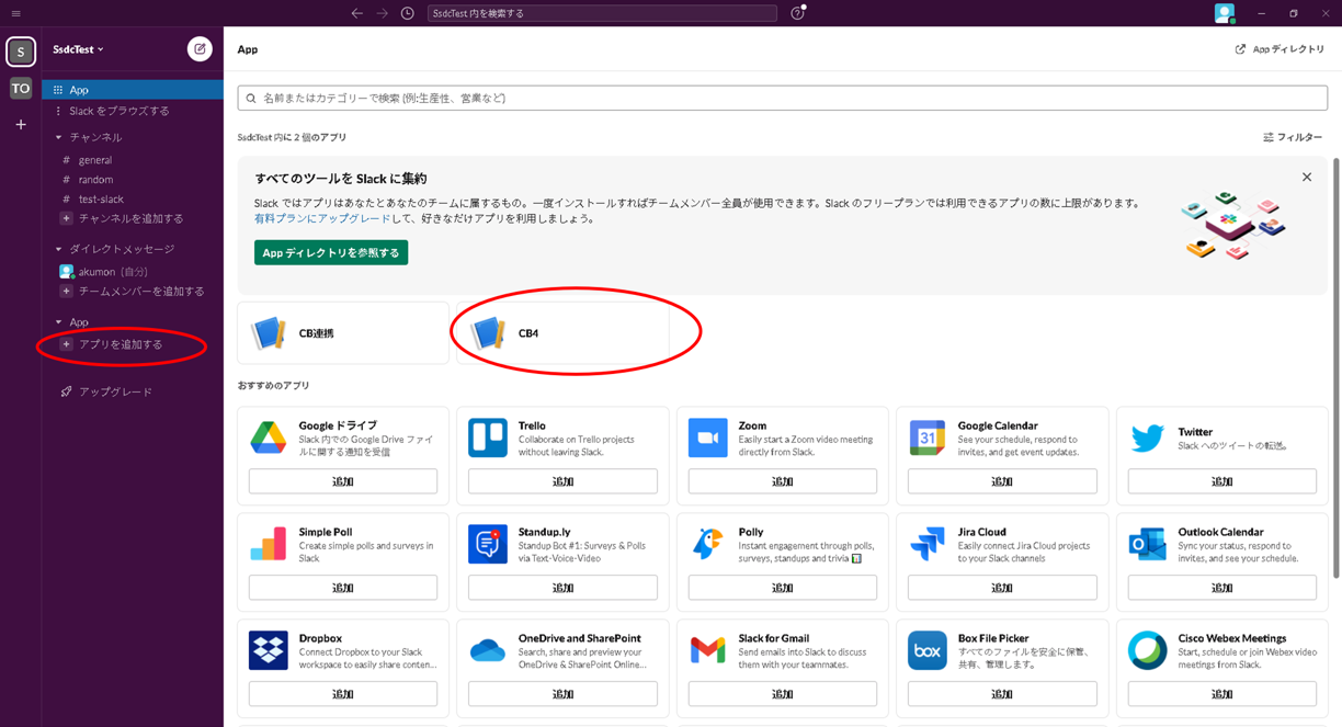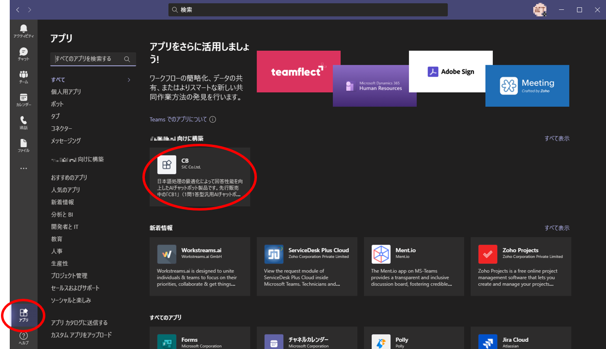 - サイドバーのアプリからチャットボットのアプリを追加します。