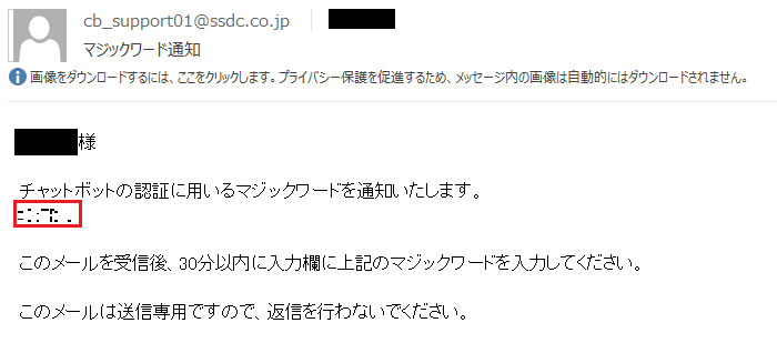 しばらくすると、発行されたマジックワードを通知するメールが届きます。