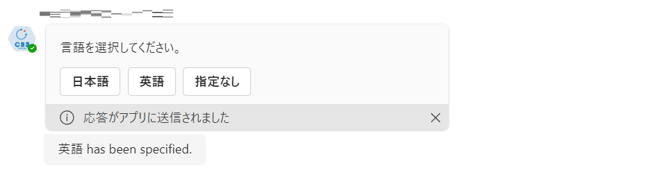 英語を選択することで、応答の言語を英語に切り替えることができます。
