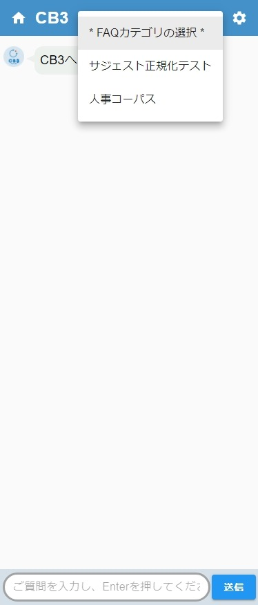 CB3ではお客様ごとの用途に合わせたコーパスを使用しておりますので、回答可能な質問につきましてはお客様ごとに異なります。