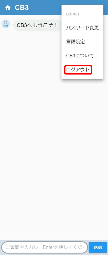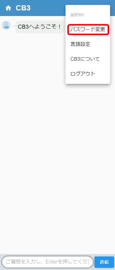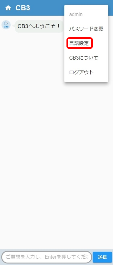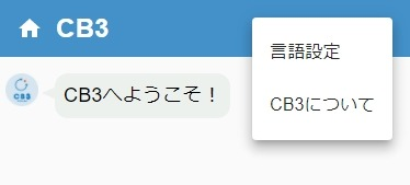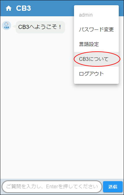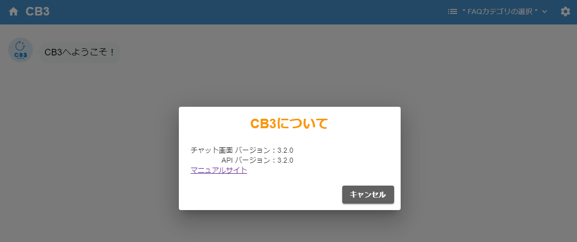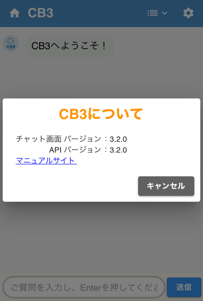 CB3のチャット画面・APIサーバのバージョンやマニュアルサイトへのリンクを表示します