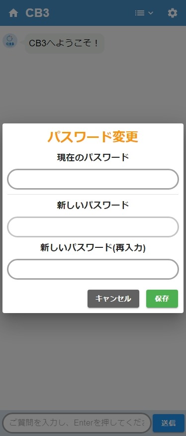 現在のパスワード、新しいパスワードを入力し保存ボタンをタッチします。