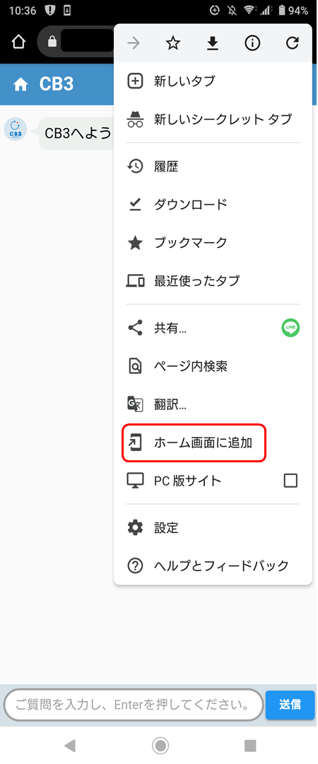 | ホーム画面に追加をタッチします。 | ![]() | ![]() |